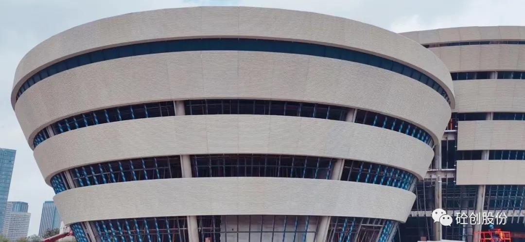 “砼創(chuàng)牌”UHPC幕墻材料,其性能非常的優(yōu)越。在生產(chǎn)過程中,很好的復(fù)制了模具的造型,實現(xiàn)精致細膩的表面肌理。松江區(qū)職工文化活動中心其建筑造型設(shè)計獨特,是由3個巨大的“碗 ”連接組成,通過UHPC幕墻與玻璃幕墻的交錯,表現(xiàn)出古樸但又現(xiàn)代的個性,通過簡單形體的組合創(chuàng)造出一種韻律美,給人對職工文化活動的憧憬和向往!