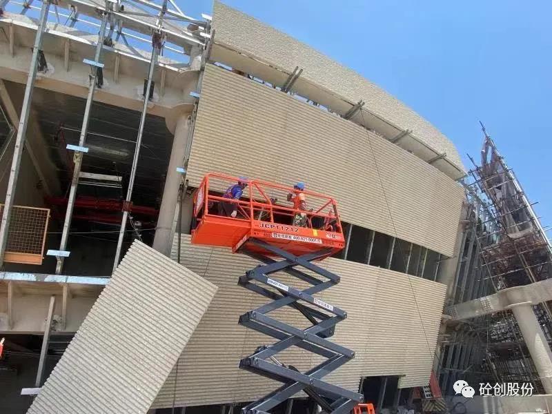 自松江職工文化活動中心UHPC幕墻建設(shè)開工以來,炎炎夏日的酷暑和反復(fù)來襲的疫情對現(xiàn)場進度造成了不小的客觀影響,但砼創(chuàng)股份的項目施工團隊全力以赴協(xié)調(diào),嚴(yán)控現(xiàn)場節(jié)點,緊密跟蹤現(xiàn)場施工進度,建筑工人們還是克服了各種考驗,通過連續(xù)的奮戰(zhàn),確保了工程進度的順利推進。