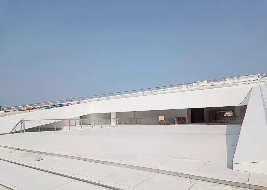 屋面檐口及走道護(hù)欄裝飾采用砼創(chuàng)生產(chǎn)的UHPC超高性能混凝土掛板,純白色清水面的UHPC板簡約并不簡單。