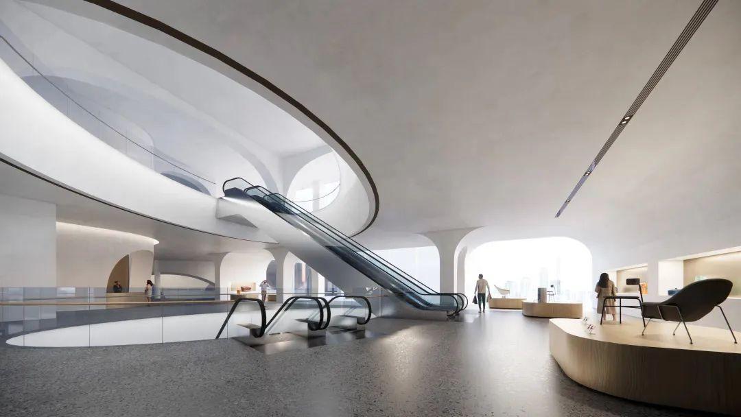 美術(shù)館由ennead設(shè)計,設(shè)計靈感來源于無錫太湖石,運用建筑空間形式語言來展現(xiàn)太湖石瘦、漏、透、皺的獨特魅力。通過虛實結(jié)合、架空設(shè)計、躍層布局、通高空間、懸挑結(jié)構(gòu)和下沉處理等手法,不僅使建筑外觀呈現(xiàn)出太湖石的形式美感,還為參觀者創(chuàng)造了豐富多樣的空間體驗。